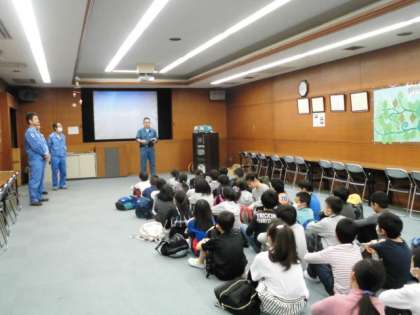 ごみを持ち上げるクレーンの大きさに、子供たちは感嘆の声を