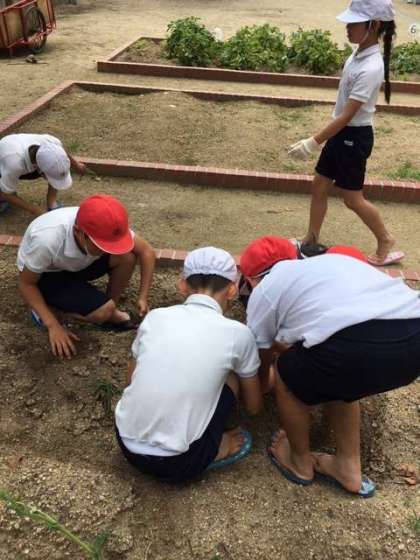 5時間目のプール学習が本格的に始まる直前に、4年生は校内の美化活動を行いました。ごみ拾いや雑草抜きをしました。きれいになった校庭や畑を見て、達成感を味わっていました。