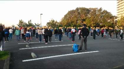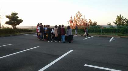 ラジオ体操をし、学級写真を撮りました。