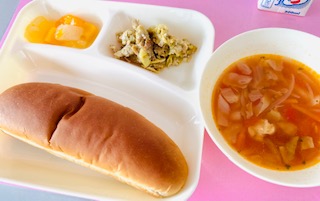キャベツ、たまねぎ、にんじん、鶏肉をトマトベースのスープで煮て作りました。