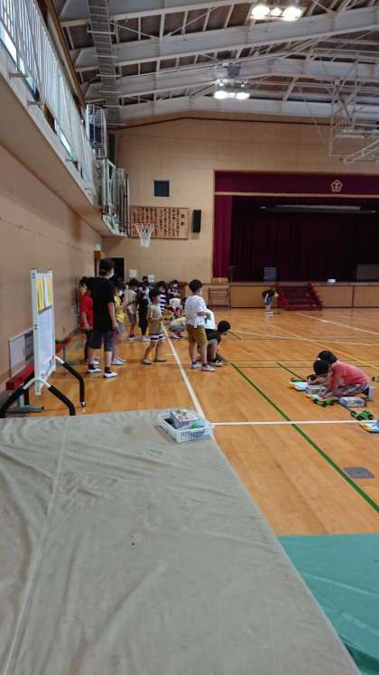 ゴムの力で動く模型で、ゴムが戻ろうとする力の強さによって動く様子が違うことに気づくかな。