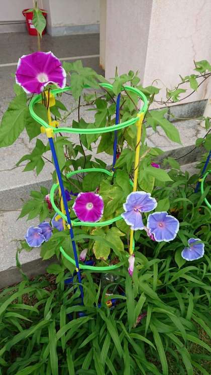 蒸し暑さをふきとばすように、あさがおの花が咲きこぼれています!