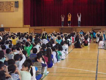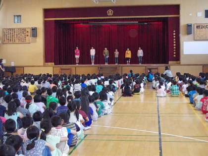 新5・6年生の前期運営委員の人たちが自己紹介と
