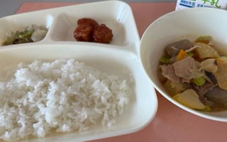 角切りにしたマグロをしょうがのしぼり汁で下味をつけて揚げて、ケチャップ、砂糖、赤みそを合わせて作ったタレに絡めます。