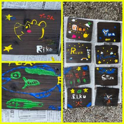 林間の思い出を絵に描いたり、自分の好きなキャラクターを描いたり
