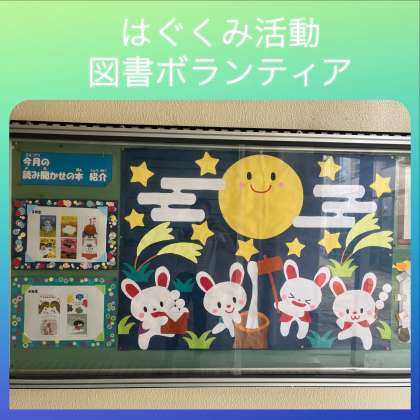 講堂前の掲示板には、はぐくみ活動(図書ボランティアさん)の掲示コーナーがあります!!