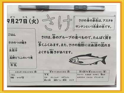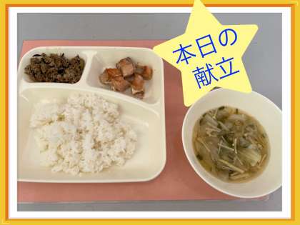 栄養教諭からの学校給食についての話を聞きながら、みんなで給食を味わいました。