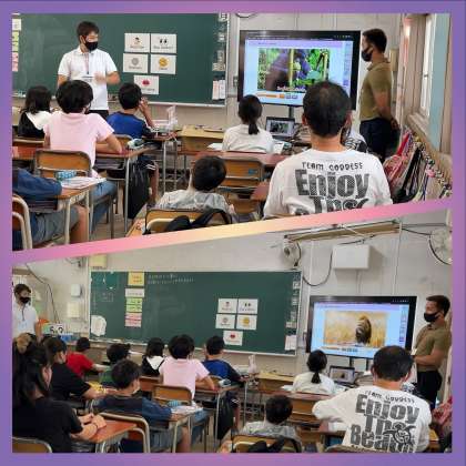 というように、ウミガメは海でくらしていること、くらげを食べていることを聞き取る授業をしていました!