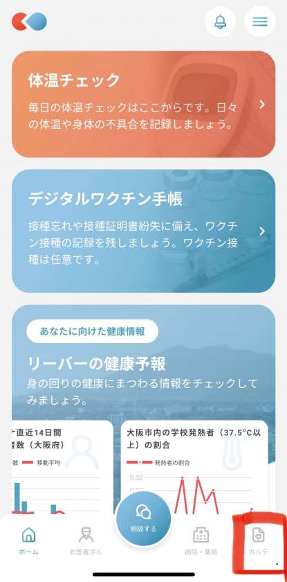 1.右下のカルテを押す