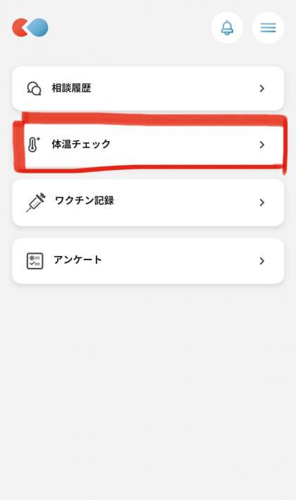 2.体温チェックを押す