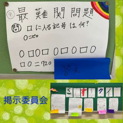 掲示委員会の掲示ボードには「さんすうクイズ」が貼りだされています!