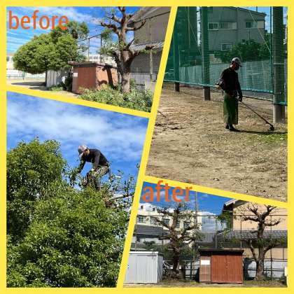 運動会に向けて、第二運動場の剪定作業が行われました。