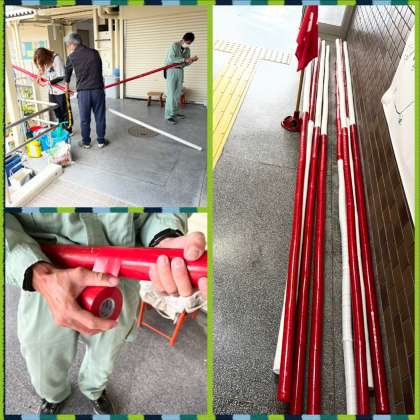 3年間、競技がなかったので倉庫に眠っていた棒をきれいにテープを巻きなおして補修し、新調しました!!