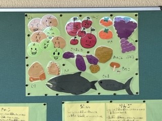 給食委員会で、秋のたべものたちの掲示物をつくりました。