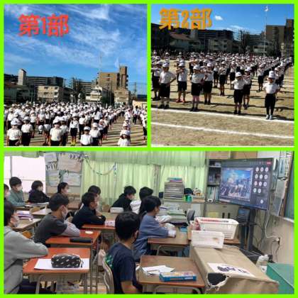 今日の児童朝会では、運動会のハイライト動画を流しました!!
