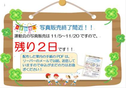 運動会の写真販売終了間近です!!