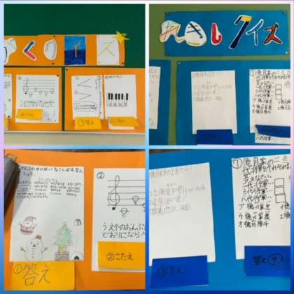 掲示委員会では、学校の掲示板に貼るクイズや問題を考えて、児童が楽しめるような掲示物を作っています!