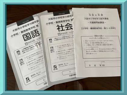 学力が定着しているかどうかのテストで、今日は国語、社会、質問紙(アンケート)が実施されました。