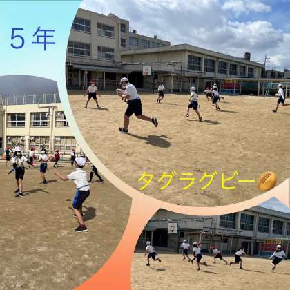 5年生の体育では、「タグラグビー」に挑戦しています!!