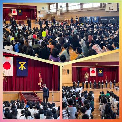今年は3年ぶりにみんなが一斉に講堂に集まっての始業式が行われました。