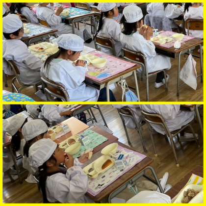給食の配膳も先生の話をしっかり聞いて、てきぱき当番活動をしていましたよ(^o^)丿