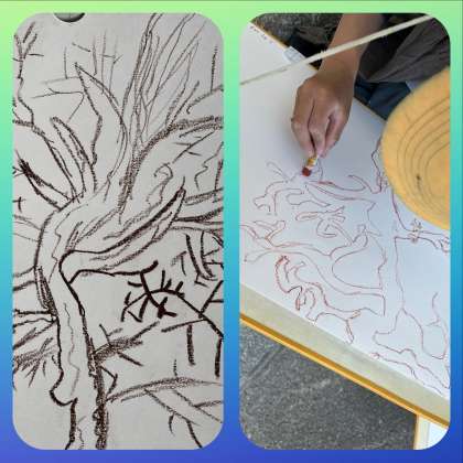 今日は木の枝だけでしたが、次は葉も書き足していきます。