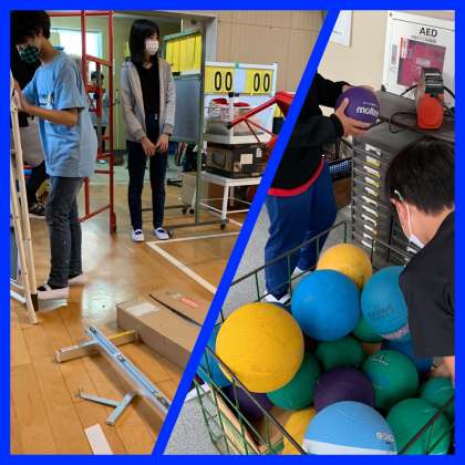体育倉庫の片づけとボールの空気入れを行いました!