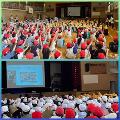 今日は、たてわり班で集まっての児童集会がありました。6年生が同じ班の1年生のお迎えに行き、赤、黄、白のどれみふぁそらし班に分かれての活動でした(^o^)丿