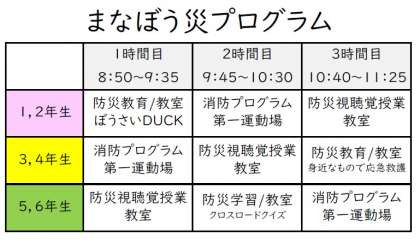 なお、4時間目は引き渡し訓練となっておりますので、学校公開に来られている方はそのまま学校に残って引き渡し訓練開始を待っていただいて構いません。