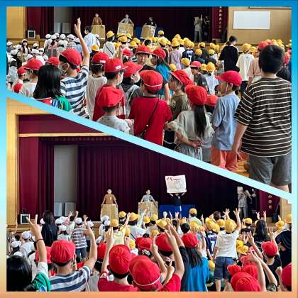 集会委員会が前でじゃんけんカードを出し、それに勝てば次に進めます!