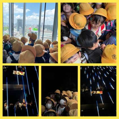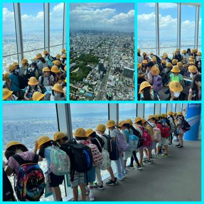 大阪を一望できるので、知っているビルや施設を見つけるとワークシートに書き込んでいろいろな角度から見える景色を楽しんでいました!