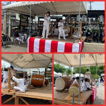 6月24日(土)、25日(日)と古宮神社で夏越祭が行われ、地車が地域を曳行しました。地車の曳行には茨田北の子どもたち数名も参加し、地車を引いたり、太鼓を打ったり、境内では、催し太鼓に龍踊りを披露してくれました。