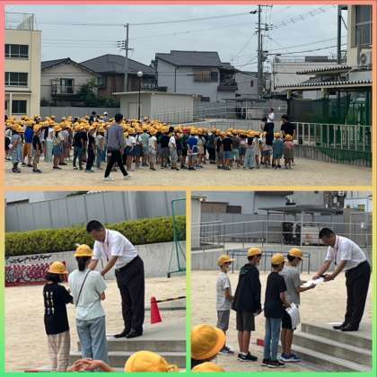 今日の児童朝会では、先週のあいさつ週間について校長先生より、児童会の子どもたちが大変よく頑張っていたとお褒めの言葉がありました。