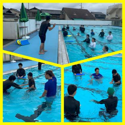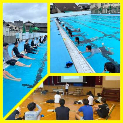 児童たちへの水泳の指導の仕方を学ぶ研修です。