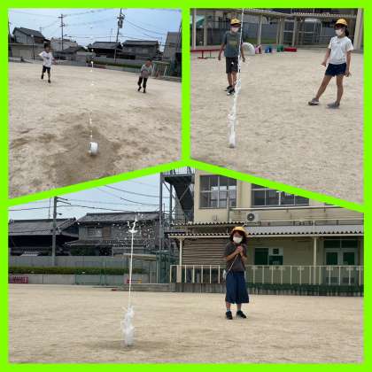 科学クラブで、ペットボトルロケットの実験を行いました。