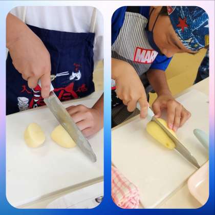 これだけですが、包丁を使っての調理が初めての5年生はドキドキ😥