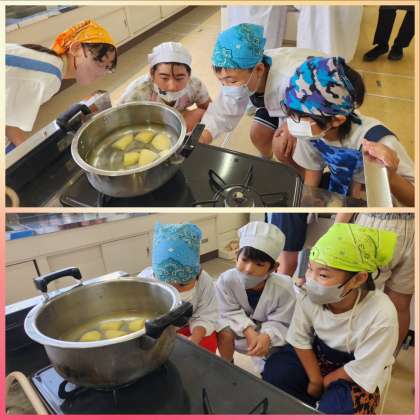 5年生がじゃがいもを湯がく調理実習をしました。