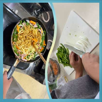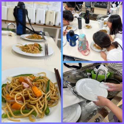 なかなか難しい調理でしたが、どの班もおいしそうな焼きそばが出来上がっていました(^o^)丿