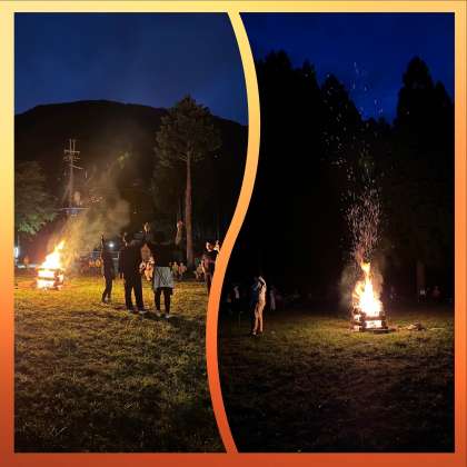 外の暗さもいい感じになってきて、キャンプファイヤーはますます盛り上がっています!