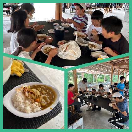 火を起こし、ご飯を炊いたり、カレーのルーを作ったり・・・