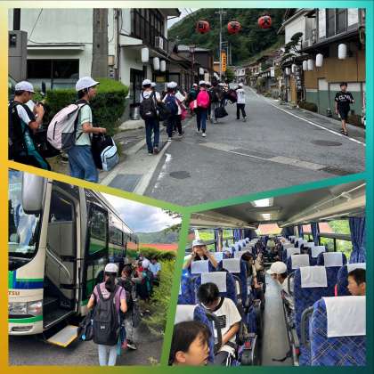 林間学習の地に別れを告げ、バスに乗り込みました!