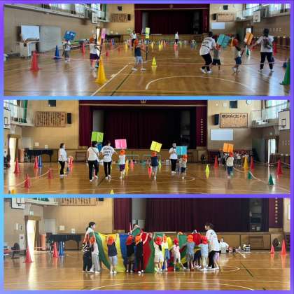 ?ほっぺるランドの園児さんたちが運動会の練習を講堂で行っていました!