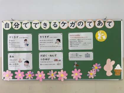 保健室に行くまでに自分でできる手当てもあります。また、学校以外で起きた時もあわてず自分でできることをしてほしいなと思います。