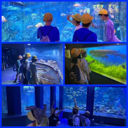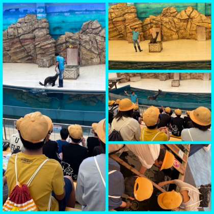 鳥羽水族館で魚を見たり、アシカショーを楽しんだりしています!