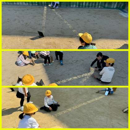 太陽の光がどのように進むのか、鏡を使って学習していました!