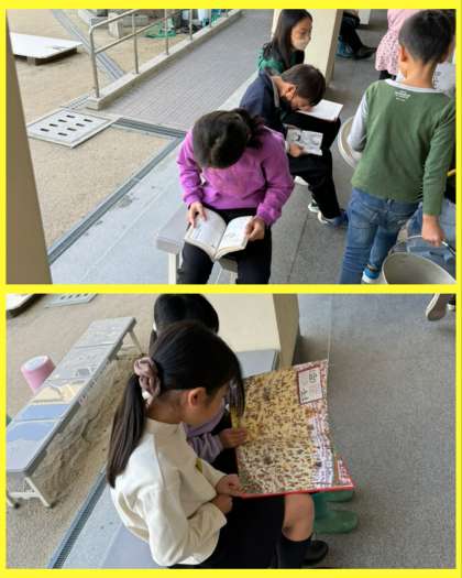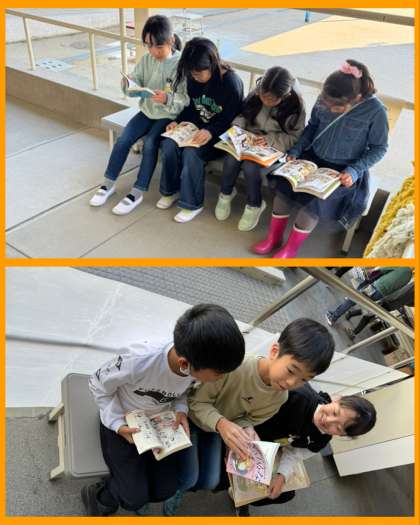 茨田北文庫前のベンチは子どもたちでいっぱいでした!