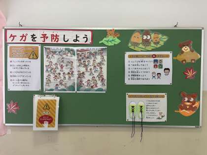 ケガをしないためにはどうしたらよいかを考えてもらう掲示にしました。