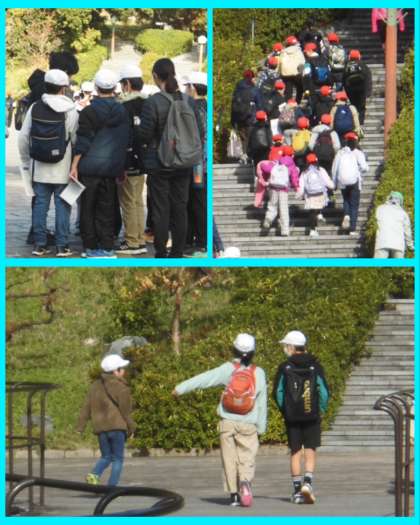 低学年の子がリーダーさんの手を繋ぎに行ったり、6年生のお兄ちゃんお姉ちゃんに甘えてる様子も見られたり、日頃できない異学年交流になりました(^O^)