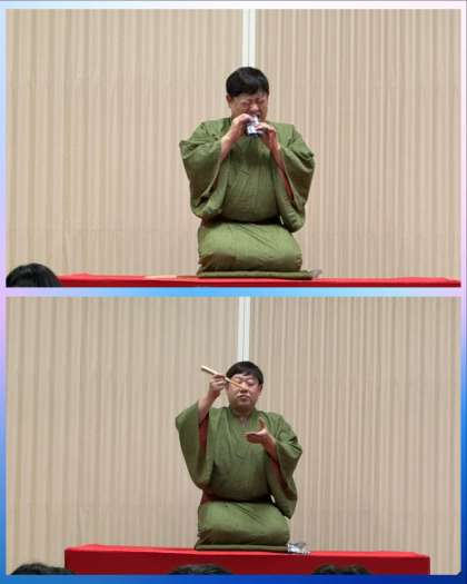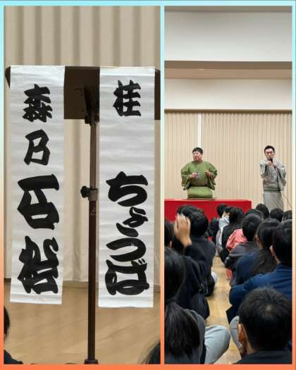 6年生が落語家の桂ちょうばさん、森乃石松さんの出前授業を受けました。