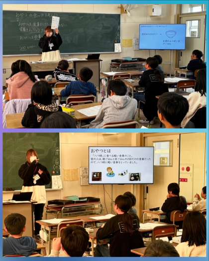 おやつは、スナック菓子だけではなくて、体のことも考えて選ぼうというテーマで学習しました!
